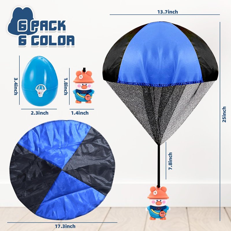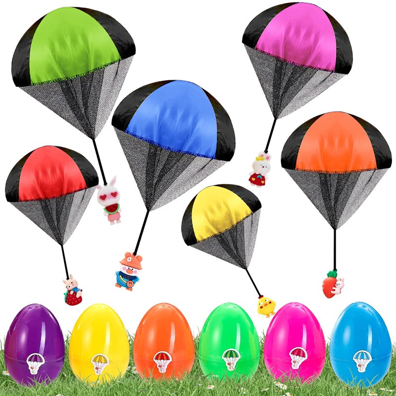 pynogeez 6 Pack Easter Eggs with Easter Parachute Toys Throwing Toy for Kids Boys Girls Easter Basket Stuffers Fillers Gifts Party Favors