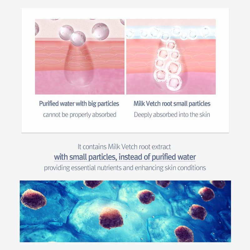 - DEEP ABSORBING: Instead of purified water, Milk Vetch Root's fine particles deeply penetrate deep into the dermal layer, providing essential nutrients and enhancing skin conditions.