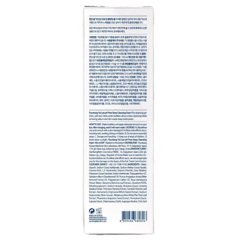 PYUNKANG YUL Low pH Pore Deep Cleansing Foam - 2 Step Solution Korean Facial Wash, Makeup Remover Face Cleanser with Witch Hazel, AHA, Cica, Tea Tree Extract, Rapid Moisture replenishment 3.4 Fl Oz