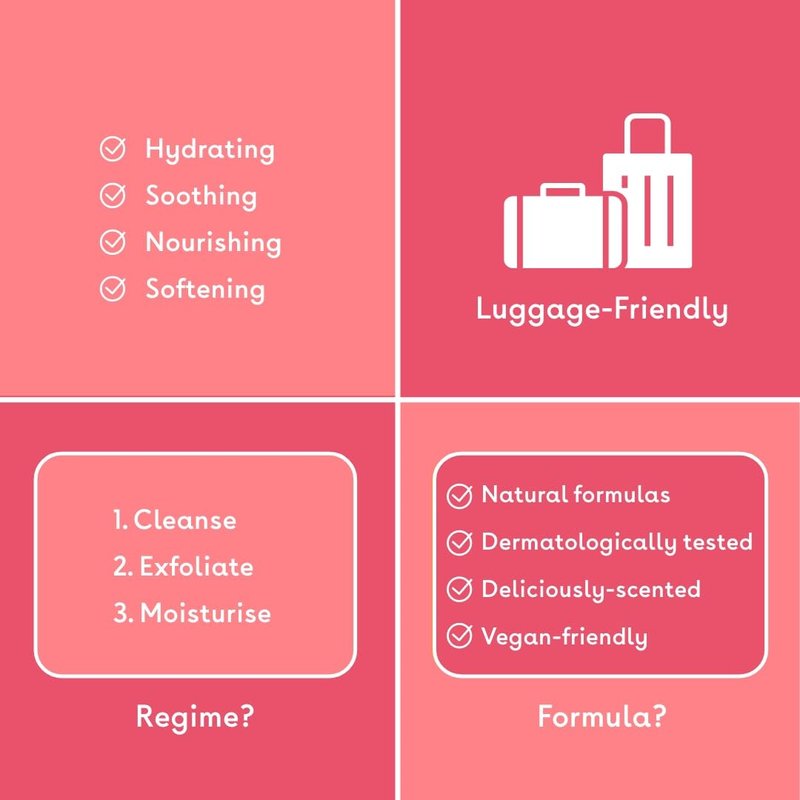 No need to compromise on your bodycare routine when travelling with this three-step regime to hydrate, smooth, and soften!
