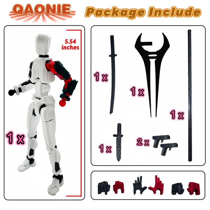 Each figure is equipped with multiple movable joints, allowing for flexible bending and swinging. This high level of mobility enables the creation of various postures and actions, making it extremely helpful for drawing, painting, and character photography. It serves as an excellent tool to practice sketching. 3D printing production: All dolls are produced using 3D printers and manually assembled with PETG environmental plastic materials. Please note that there may be some minor flaws in the models; perfectionists should take caution! (Figure height is approximately 5.54 inches) Accessories: The doll comes with a stand, six interchangeable hands, many sword stick gun, and armor (please note that accessory colors are all black). Creativity and imagination: Adjust the doll's posture according to your own imagination and creativity to create unique stories and adventures. Versatile applications:You can use them on car dashboards, desks, backpacks, and more, all of which are excellent decorations that allow you to play with toys when you are anxious. its will relieve your high tension and prevent mental exhaustion.