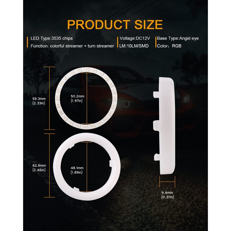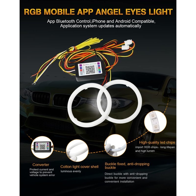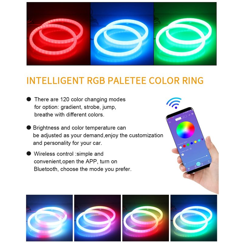 - Wide Application: This RGB APP Angel eyes suitable for Car, Motorcycle, Scooter. Can used for angel eyes, fog lamps, day light, turn signal light, etc.