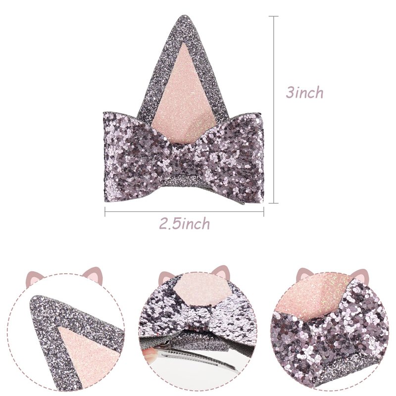 - Sequin hair bow approx. 2.5 inches in length; 3.0 inches in height. Each cute hair bow is attached to a 4.5cm metal alligator clip, making it easy for your child to remove or wear in just a breeze!