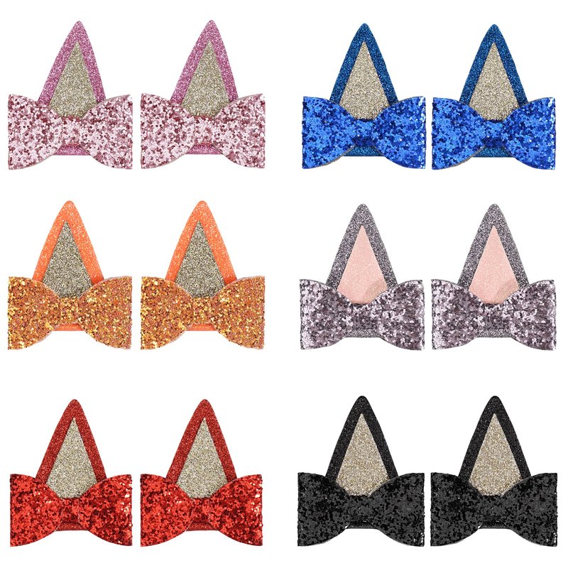 - Package included 6 pairs glitter hair clip, containing pink, red,black,orange, blue bows. These sparkling hair clips look more pretty, nice, fancy, beautiful, unique and exquisite.