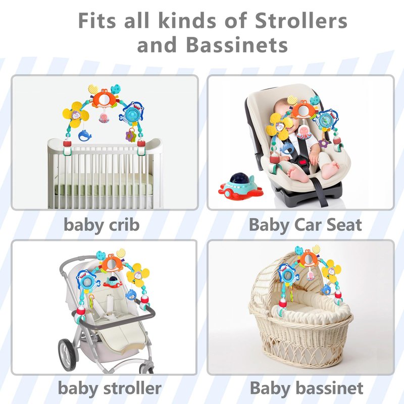 qesfir Musical Baby Stroller Arch Toys, Travel Car Seat Toys, Baby Play Arch Crib Accessory Toys, Mobile for Bassinet, Pram Activity Arch Bar Toys for Babies Infants