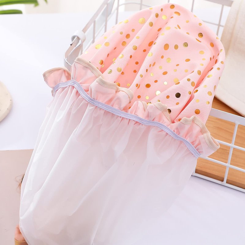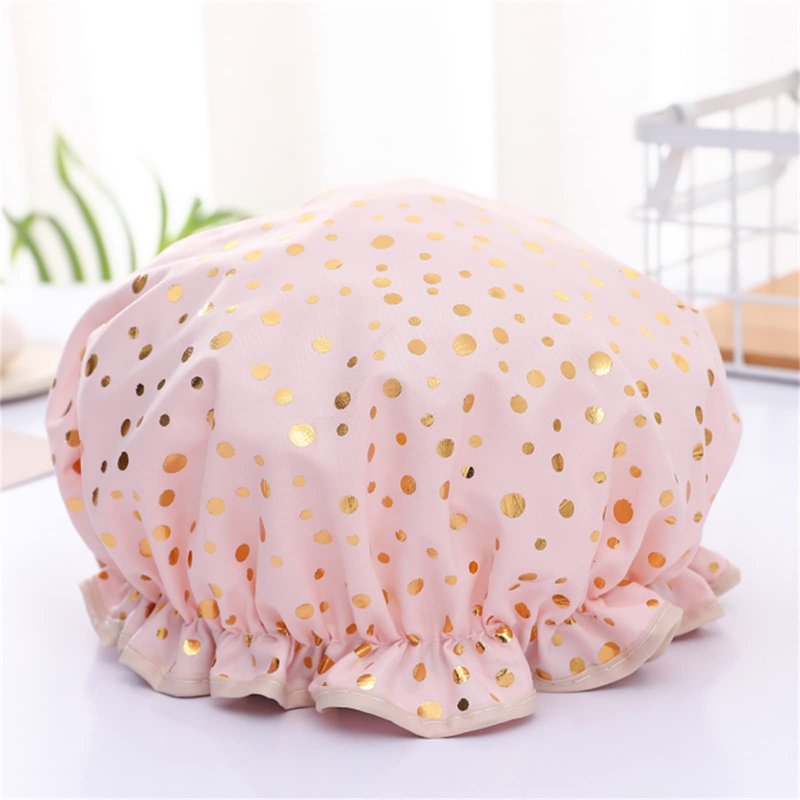 - Stylish Shower Cap: 2 Pieces Pink shower cap with two style hot gilded stamping printing dots and star shower cap