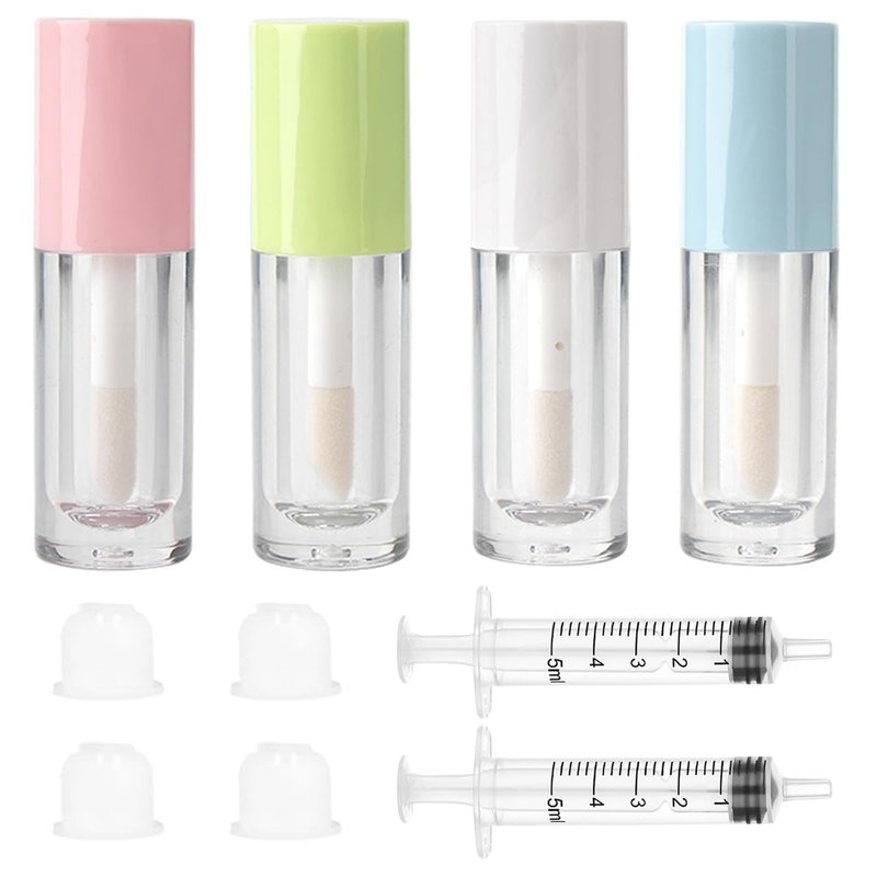 - Effortless Application: 4 Pcs empty lip gloss tubes(pink/green/white/blue) equipped with lip gloss applicator wands, rubber inserts, ensuring a leak-proof seal, The free plastic syringe helps you easily fill lip gloss or other beauty products into the tube