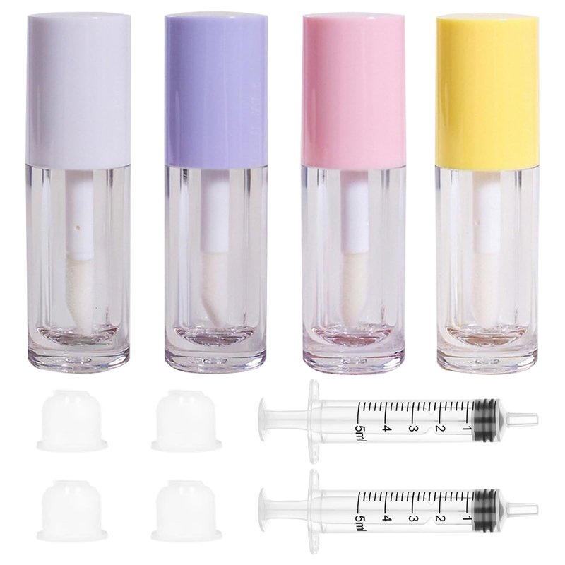 - Effortless Application: 4 Pcs empty lip gloss tubes(purple/pink/yellow/white) equipped with lip gloss applicator wands, rubber inserts, ensuring a leak-proof seal, The free plastic syringe helps you easily fill lip gloss or other beauty products into the tube