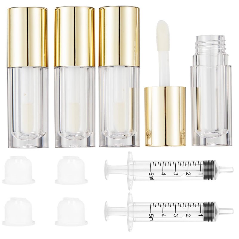- Effortless Application: 4 Pcs empty lip gloss tubes(golden) equipped with lip gloss applicator wands, rubber inserts, ensuring a leak-proof seal, The free plastic syringe helps you easily fill lip gloss or other beauty products into the tube