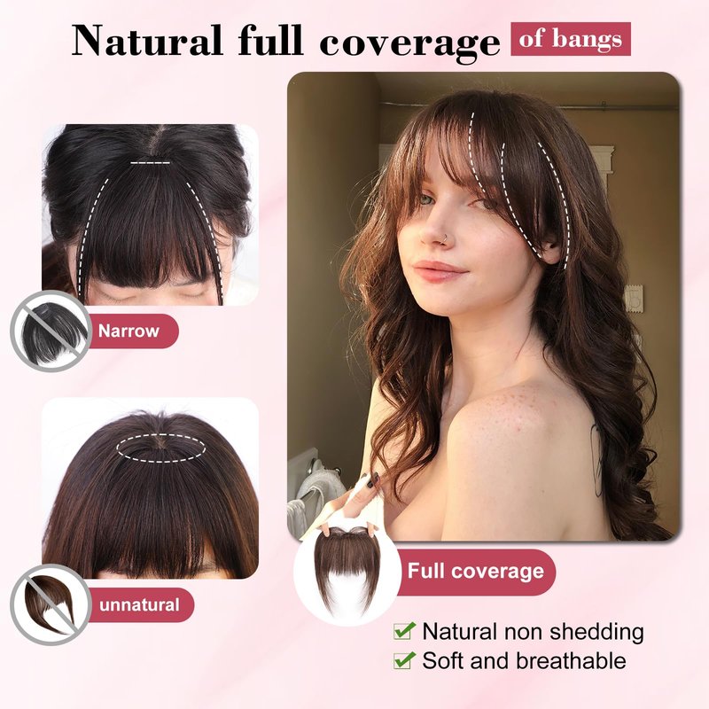From wispy bangs with hair temples for a cute and nifty look, to French bangs offering ample thickness to cover the forehead, and air bangs for a natural appearance that can be tailored to your liking. Please take a photo of your hair under natural light,and then choose a hair color that is similar to the product color.