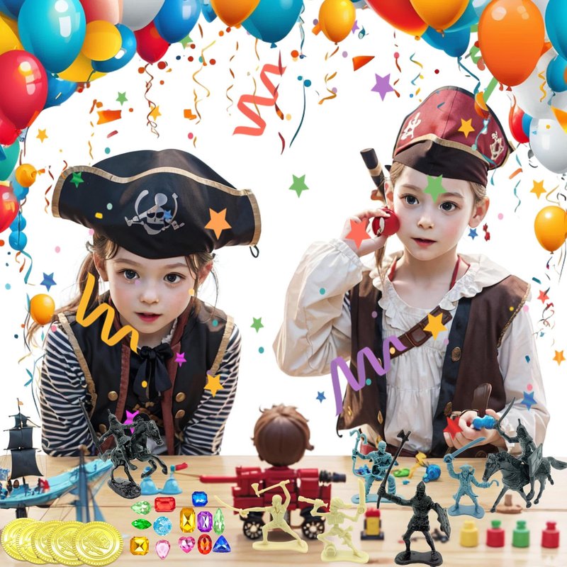 Not only does this set make the best Halloween, Christmas or birthday gift for kids, it also inspires your child's imagination and creativity. Children can play a variety of roles and create their own stories, promoting teamwork, sharing and improving social skills. Operating these soldier and pirate toys also exercises your child's mind and body, honing spatial awareness and hand-eye coordination. Not only are these toys great for playing at home, they can also be taken to the beach or lawn to simulate different scenarios. You can also play military treasure hunt games with your children to increase the parent-child interaction experience. Additionally, these toys can be used for school projects, decorating war/battle models or pirate treasure hunts, or even as travel souvenirs and home decorations, party decorations, and perfect brain games. Let your children stay away from electronic products, return to nature, and give full play to their imagination and creativity, so as to get more parent-child interaction and fun!