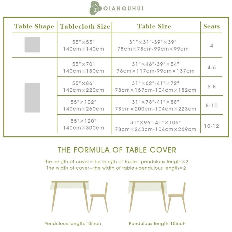 - 【WATERPROOF & WRINKLE FREE】: QIANQUHUI rectangular tablecloth with extra water resistant coating makes the table covers spill and spot-proof and doesn’t need ironing, touches smooth,not easy to be scratched to ensure the the perfect table cover protector for your table.