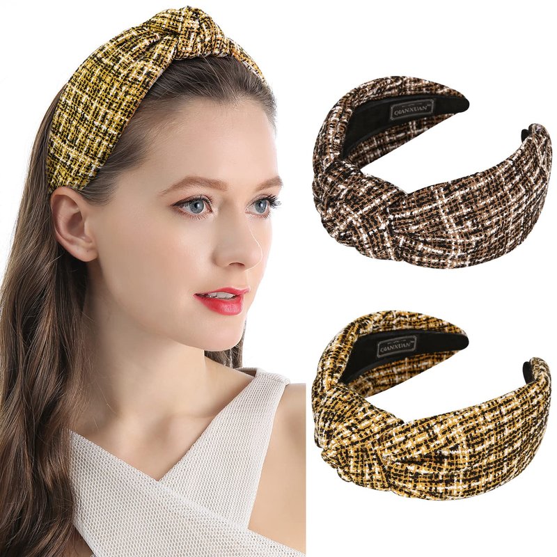 Qianxuan Knit Hair Bands Exists Because Of Beauty Every Women Tweed Plaid Headbands Is Hand-Made By More Than A Dozen Ways, You Deserve It! Ladies' Knotted Turban Headbands Are Made Of Tweed Plaid, Classic Fabric Material,No Matter Where You Are, You Are The Protagonist! You Can Wear These Knit Hair Bands. In Any Situation: Suitable for indoor and outdoor use, such as parties, wedding ceremony, dating, concerts or just daily wear. 【Qianxuan Tweed Plaid headband Product Description 】:Ladies' Knotted Turban Headbands, The Headband Adopts Comfortable Tweed Plaid Fabric material, Various Short, Long, Curly, Straight, Wavy, Thin, Thick Hairstyles Are Applicable 【 Features of Ladies Fashion Brown Hairband】: ✔ The Brown Hairband Is Made Of Tweed Plaid, Which Is More Noble Than Ordinary Fabric. ✔ The Knit Hair Bands Size Is Suitable For Different Head Shapes. ✔The Tweed Plaid headbands Wear-free And Durable. ✔ Sophisticated Handmade Products, Quality Assurance More Noble. ✔ A Great Choice To Choose Fashion As Gifts For All Kinds Of Ladies【Qianxuan Knit Hair Bands For Women】 Our Knotted Turban Headbands Can Be Used As Your Girl’S Birthday Gift, As A Valentine’S Day Gift For Your Lover, Or As A Mother’S Day Gift. Also To Your Friends.All Ladies Like The Tweed Plaid Headbands. Fashionable Female Top Knotted Headband.Ladies Headband 2 Pieces Of Twill Hair Accessories . Your Beauty Is Indescribable!