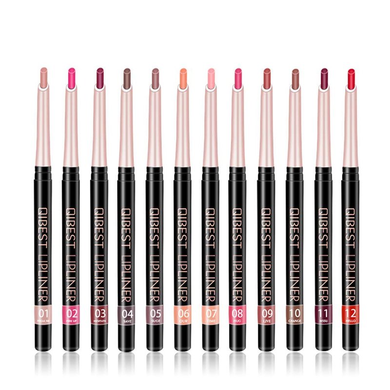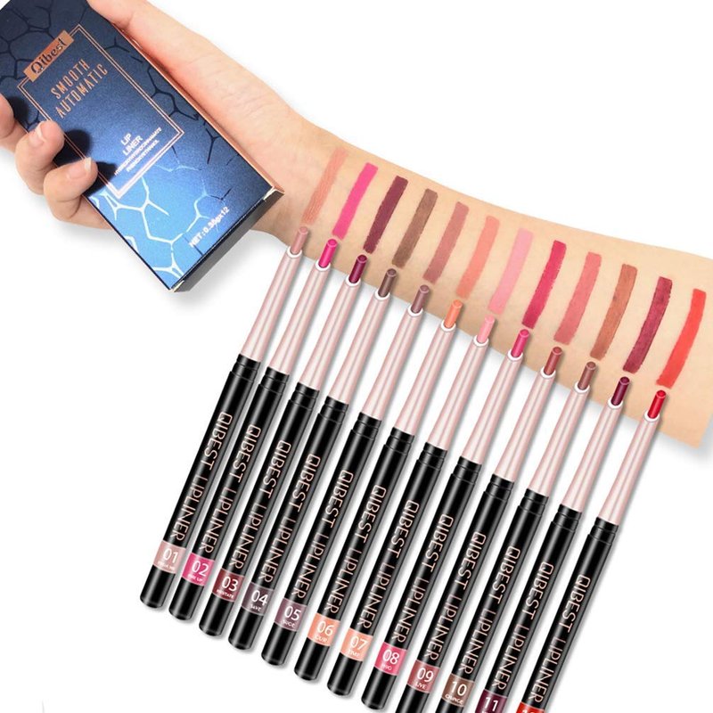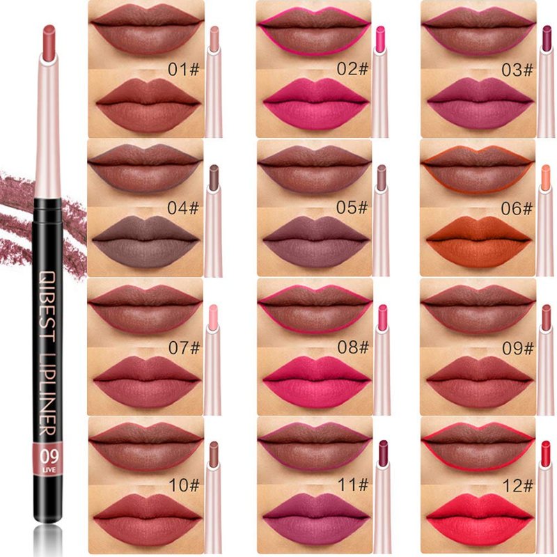 QiBest 12 Colors Lip Liner Pencil Waterproof Non-Marking Matt Velvet Lipstick Pen (12Pcs Lot Set)