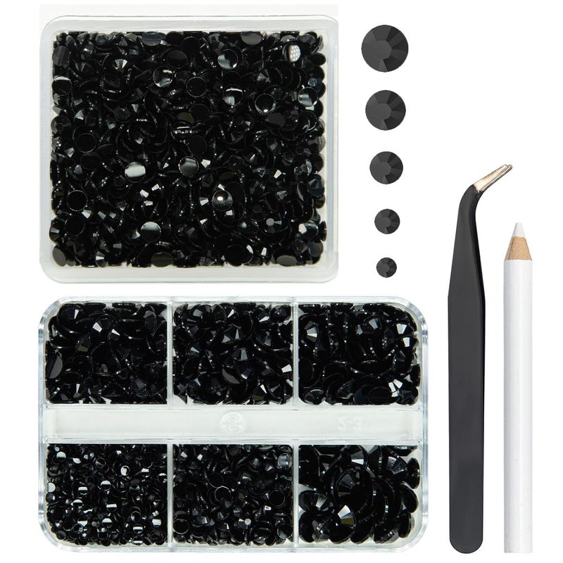 - ❤【2 Boxes Pure Black Resin Rhinestones + Stainless Steel Tweezer + Pickup Pen】3060PCS Pure Black flatback jelly rhinestones are assorted in 5 sizes: 2mm 1300PCS / 3mm 450PCS / 4mm 920PCS / 5mm 350PCS / 6mm 40PCS. Pure Black flatback Jelly rhinestones are very light and easy to carry, all gems are packed in each grid boxes according to different sizes, convenient to oragnize, no worry about rhinestones mixed together. Comes with 1 Tweezer and Pickup Pen for DIY Crafts.