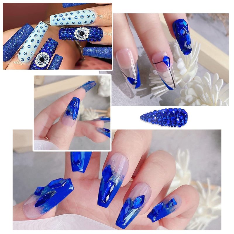 - ❤【Multi-Functions Sapphire Blue Diamonds Rhinestones & Available Occasions】Sapphire Blue nail rhinestones and gems set are very suitable for 3D nail art, Dark Blue nail charms, flat nail art, Arts & Crafts, DIY slime making, DIY crafting projects, night out, costumes, wedding dress, books, scrapbooks, Christmas decorations, gift-wrap, ornaments, ceramics, greeting cards, signs, faces, eyes, makeup, computer, cell phone case, invitation card and etc.
