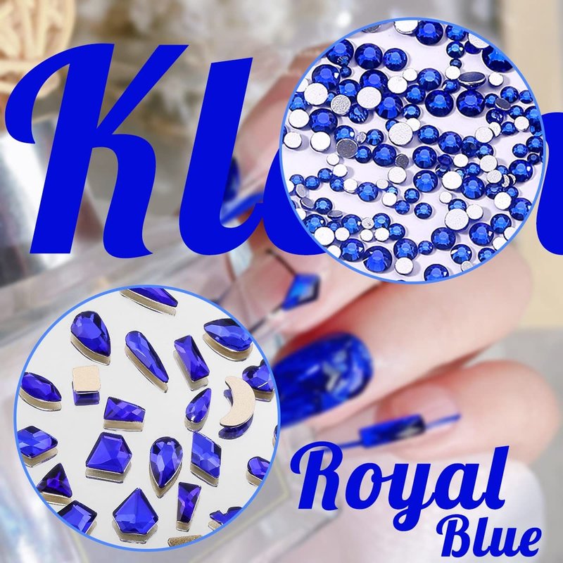 qiipii 2052Pcs Sapphire Blue Nail Art Rhinestones Kit Royal blue Nail Charms 72Pcs Multi Shapes Crystal Flatback Rhinestones Big Gems + 1980Pcs Round Beads Glass Stones Diamonds jewels for Nails Faces Eyes Makeup etc
