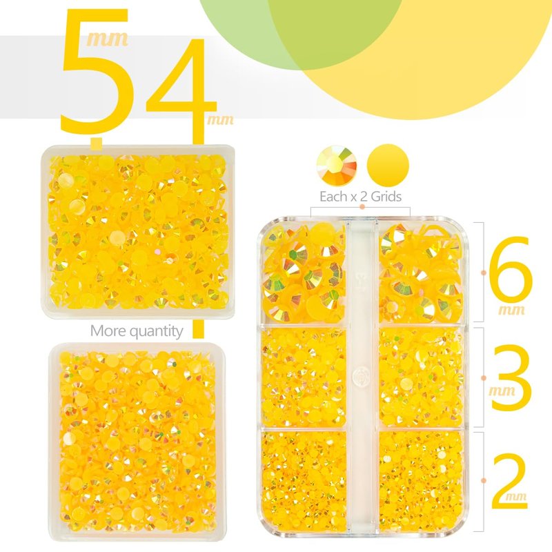 - ❤【3 Boxes Orange Yellow AB Resin Rhinestones + Stainless Steel Tweezer + Pickup Pen】5070PCS Orange AB flatback jelly rhinestones are assorted in 5 sizes: 2mm 2700PCS / 3mm 820PCS / 4mm 920PCS / 5mm 550PCS / 6mm 80PCS. Orange Yellow AB flatback Jelly rhinestones are very light and easy to carry, all gems are packed in each grids boxes according to different sizes, convenient to oragnize, no worry about rhinestones mixed together. Comes with 1 Tweezer and Pickup Pen for DIY Crafts.