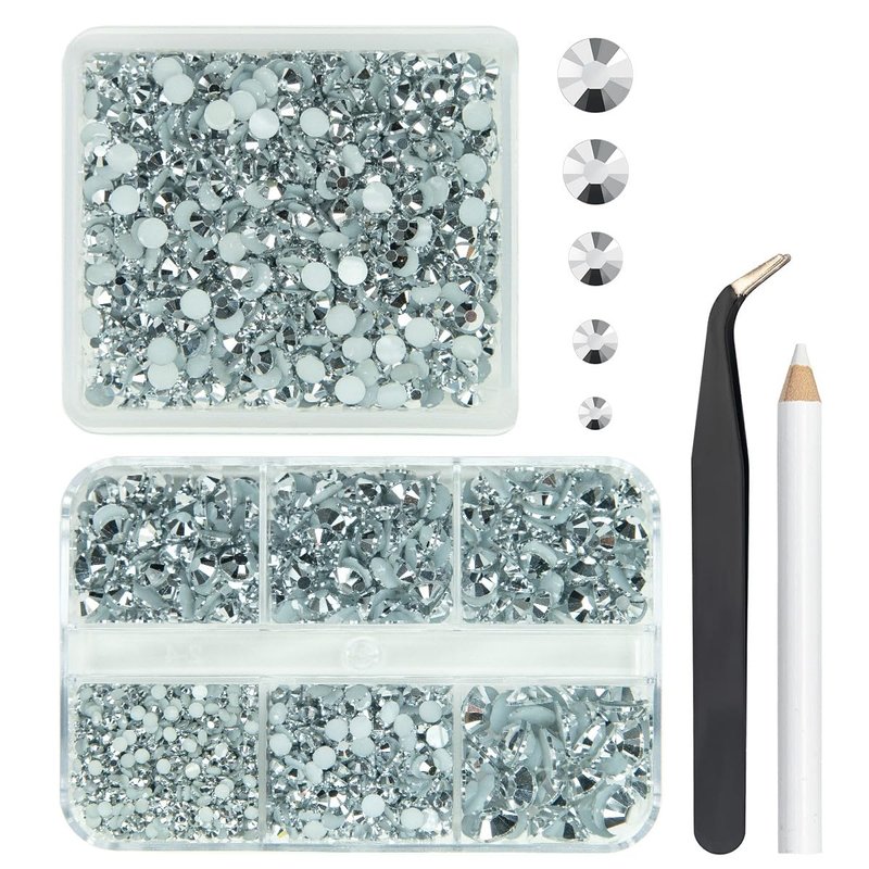 - ❤【2 Boxes Silver Resin Rhinestones + Stainless Steel Tweezer + Pickup Pen】3060PCS Metallic Silver flatback resin rhinestones are assorted in 5 sizes: 2mm 1300PCS / 3mm 450PCS / 4mm 920PCS / 5mm 350PCS / 6mm 40PCS. Silver flatback resin rhinestones are very light and easy to carry, all gems are packed in each grid boxes according to different sizes, convenient to oragnize, no worry about rhinestones mixed together. Comes with 1 Stainless Steel Tweezer and Pickup Pen for DIY Crafts.