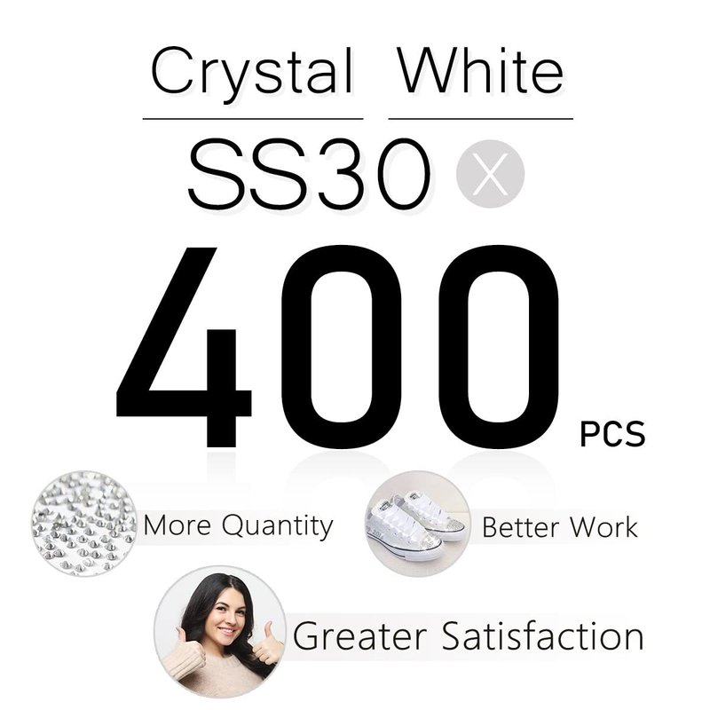 qiipii 400pcs SS30 Crystal White Nail Flatback Rhinestones Bulk Nail Art 6.1mm Round Glass Gems Beads Stones Diamonds for Eye Makeup Nail Decoration Jewels Accessories Crafts Clothes Shoes DIY