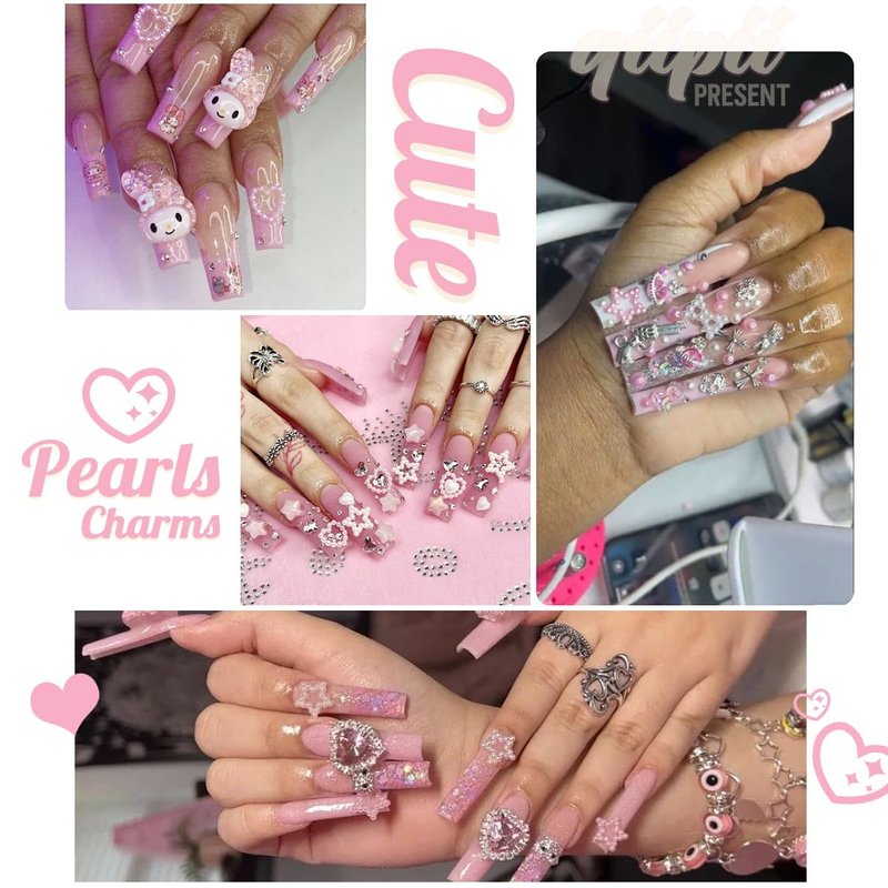 qiipii Pearls Heart Nail Charms Light Pink Creamy White AB Flatback 3D Half Round Pearls Charms Clear Heart Charms Purple Cute Hollow Heart Star Bear Bowknot Butterfly Candy Charms for Nails AB Rhinestones Nail Art Suppplies Nail Decor for Acrylic Nails DIY Crafts Material Embellishments Scrapbook Accessories etc