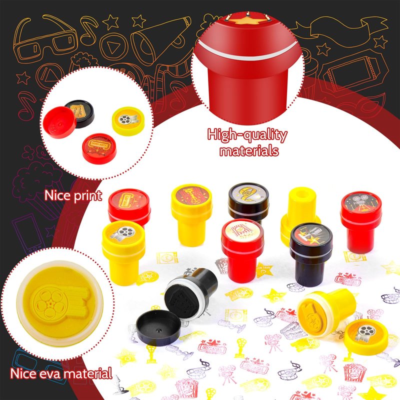 - Broad Applicability: the self inking stamper is designed with the movie night theme, suitable for most occasions, such as movie themed parties, Easter, birthday parties, tea party gifts, carnival and more; The exquisite patterns and classic themes make it an ideal party favor