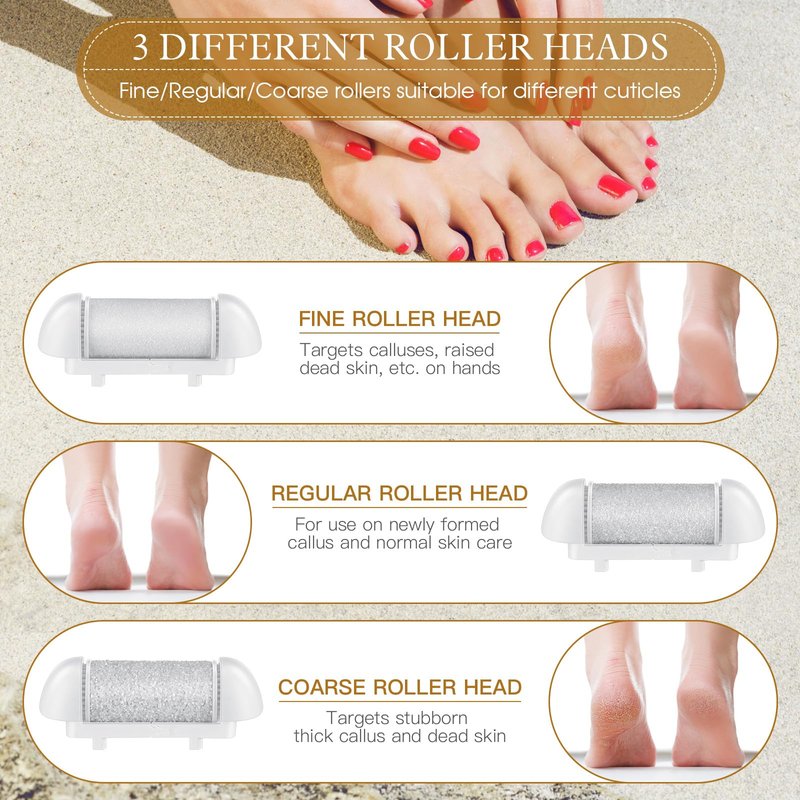 - 3 Different Coarse Levels: from fine to regular and coarse, these roller heads can handle different levels of calluses ensuring your feet are clean, and smooth, pedicure tools for feet callus remover is ideal in versatility and flexibility