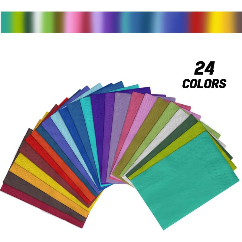 - Size: 120 sheets, 2-ply, foldable to 4.33*8 inches, unfolds to 13*16 inches, 24 colors Dinner Napkins.