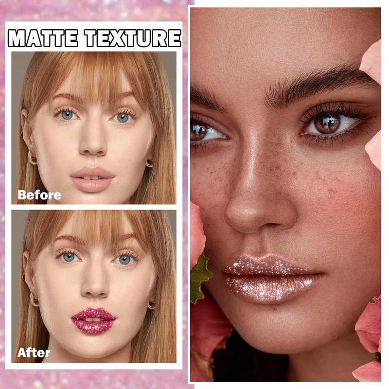 1.Diamond-like glitter,glitter lip gloss set is matte and smooth,highly pigmented,and the color shines like diamonds.It shows gorgeous and advanced glitter lip makeup,making you the center of attention.