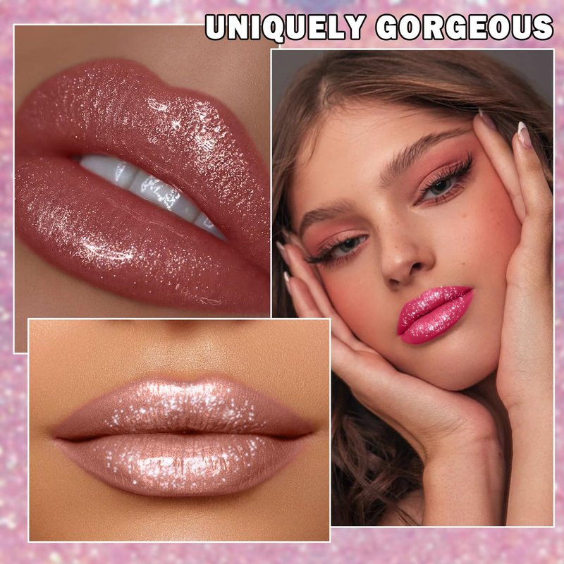 - 【Skin-Friendly Ingredients】Glitter lip gloss is made of luxurious skin-friendly ingredients,which is friendly to the lip skin.It has a light and natural feel,is gentle and comfortable,and fits the lips perfectly.Suitable for all skin types.