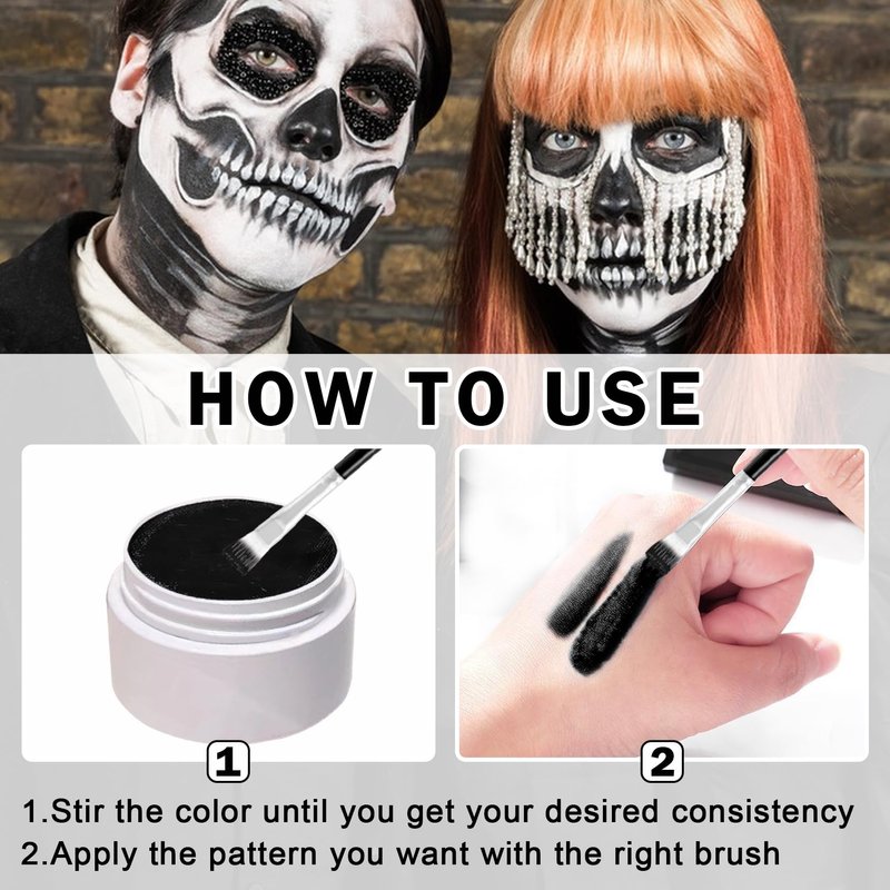 - 【Face Painting Kit Professional】Black and white face painting kit professionally creates the dramatic look of artistic makeup such as clowns,vampire zombies,stage play performances,etc.,allowing you to better integrate into the joy of the festival