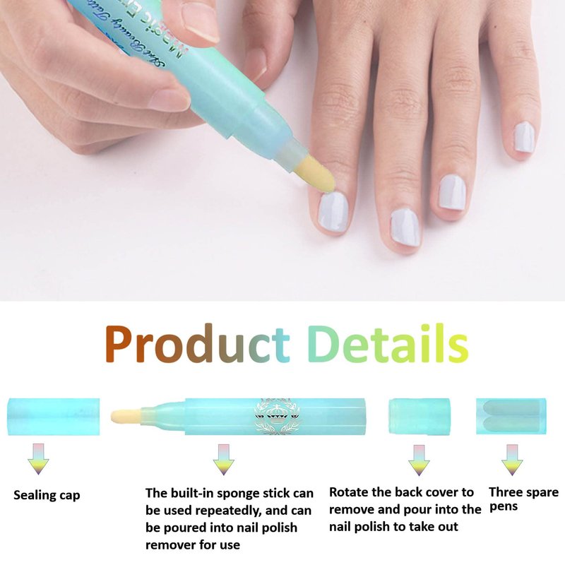 - 👍How to Use: Pour the nail polish remover into the pen holder and install the pen tip to use, or directly dip the pen tip into the nail polish remover to erase the nail polish. It is an easy-to-use nail polish correction pen.