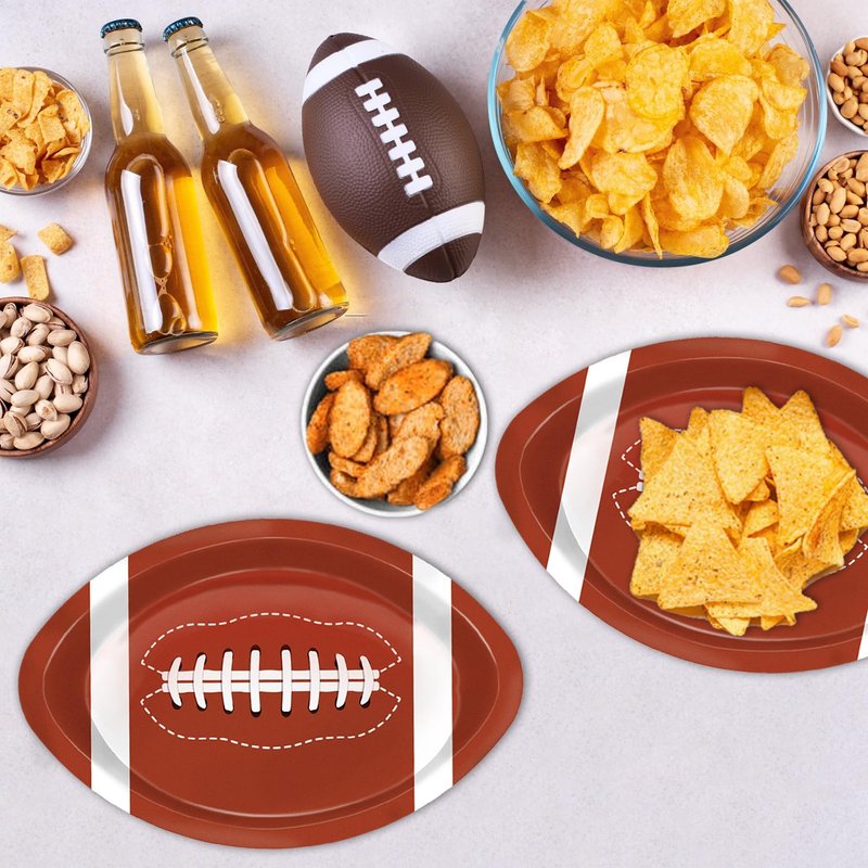 - FOOTBALL THEME DESIGN: Our disposable paper plates are shaped like footballs, creating a perfect gaming atmosphere for your football party. With their novel and attractive shapes, these plates are sure to impress your guests.