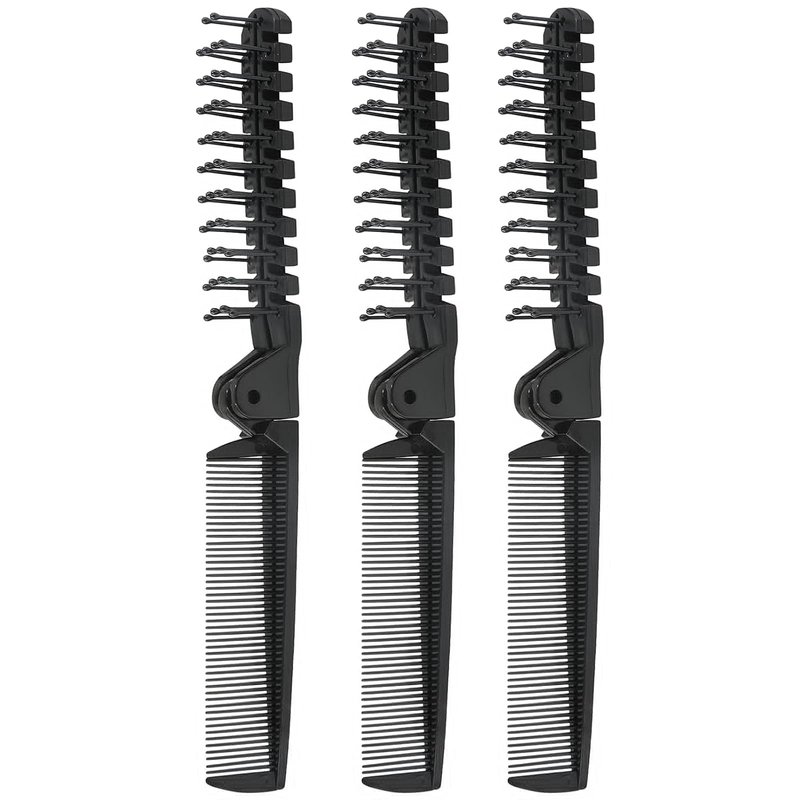 - ✿Package Contains: 3 x foldable compact brush, Color: Black, Folding Size: 4.3 inch x 0.75 inch x 1.1 inch / 11cm x 1.9cm x 2.8cm (L*W*H), Open Size: 8.27 inch x 0.75 inch x 0.98 inch / 21cm x 1.9cm x 2.5cm (L*W*H),. It can be used for combing straight hair, curly hair and wigs.