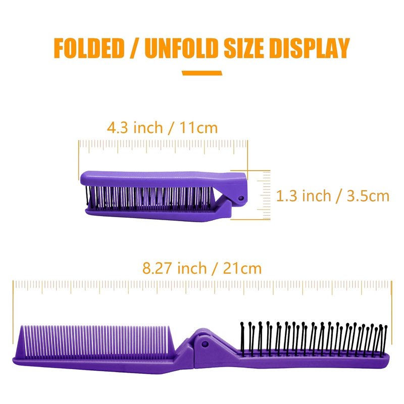 - ✿Package Contains: 6 x foldable compact brush, Color: Purple, Folding Size: 4.3 inch x 0.75 inch x 1.3 inch / 11cm x 1.9cm x 3.5cm (L*W*H), Open Size: 8.27 inch x 0.75 inch x 0.98 inch / 21cm x 1.9cm x 2.5cm (L*W*H),. It can be used for combing straight hair, curly hair and wigs.