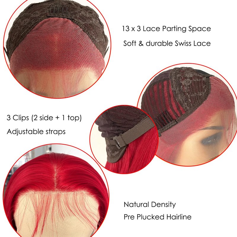 - 【Beginner Friendly】Red synthetic lace front wigs, the color pops, less shiny, compliments the skin very well, everyday wig and beginner friendly