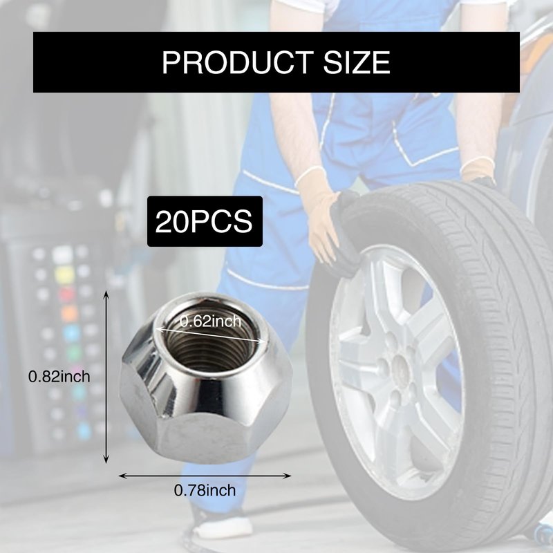 QODOLSI 1/2-20In Car Tire Nut Cap, Open Ended Lug Nuts, Anti-theft Tire Hole Screws, for Car, Truck, Trailer (20 PCS)
