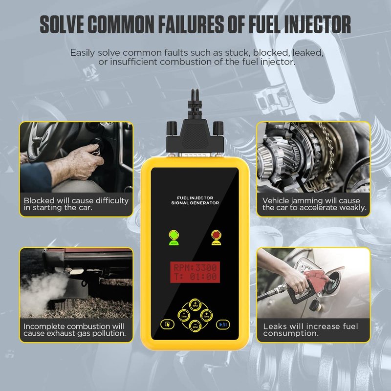 - 🚓【Solve common failures of fuel injector】:Easily solve common faults such as stuck, blocked, leaked, or insufficient combustion of the fuel injector.