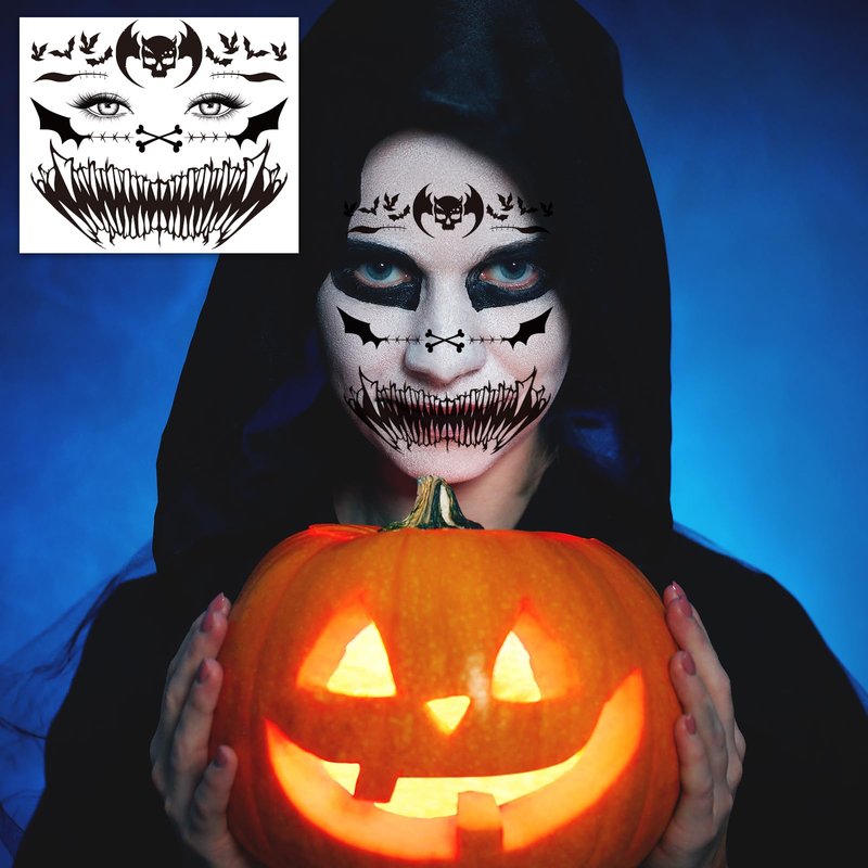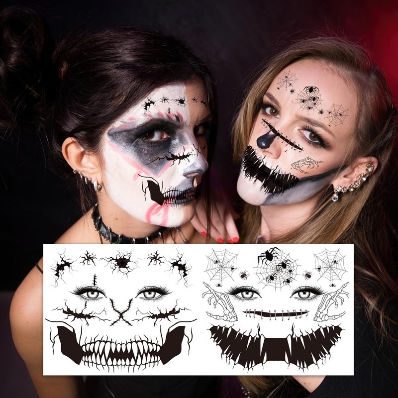 Qpout 9 sheets halloween face tattoo retains its wicked allure after long wear, making it ideal for parties, haunted spots, and photo shoots.