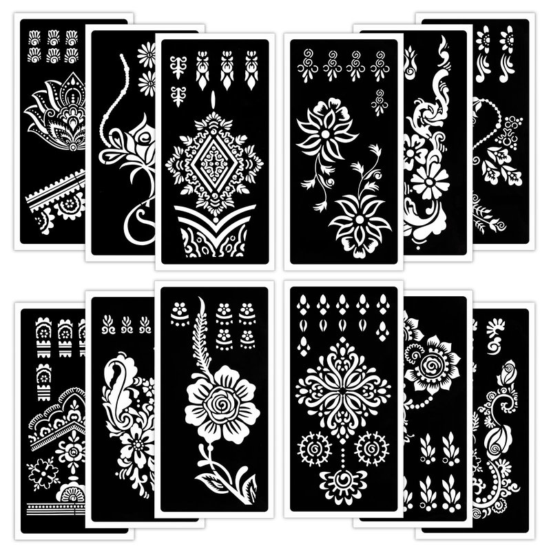 - ▶ 【Henna Tattoo Kit】 12 sheets tattoo stencils. Henna stencils for hands. airbrush tattoo stencils suitable for tattoo lovers. Henna tattoo kit for beginners. Experience the effects of tattooing without the pain of tattooing.