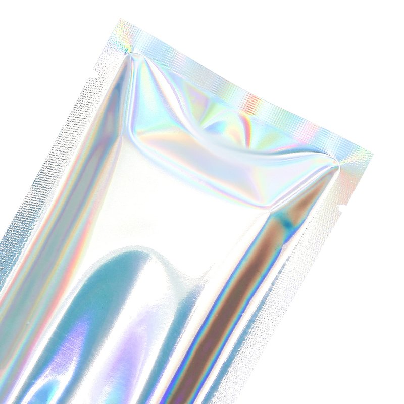 - Holographic- These pouches are coated in a color-shifting holographic color. From one angle the bags will show off vivid greens, from another the bags will look like a radiating bold red tone. These holographic bags show off every color of the rainbow.
