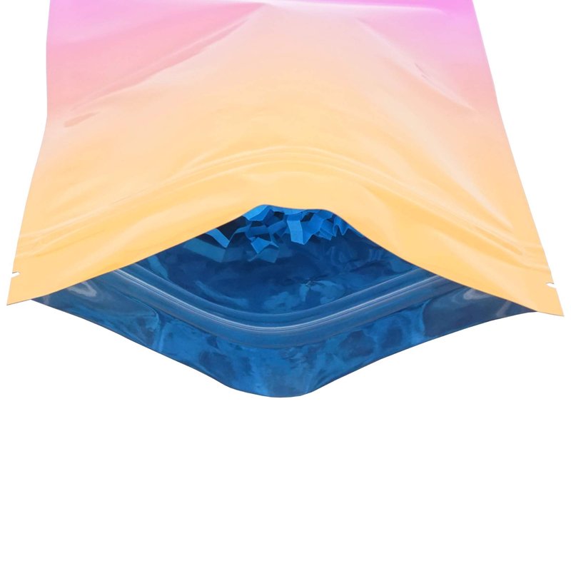 Use our appealing ombre flat resealable foil bags to store and protect your products. Place your products in our bags through the single lock opening and then close the zipper to keep them safe. The foil material will work hard to keep harmful elements, such as moisture, gases, and debris, away from your valuable products. For extra security, these bags can be heat seal above the zip lock area for extra protection.