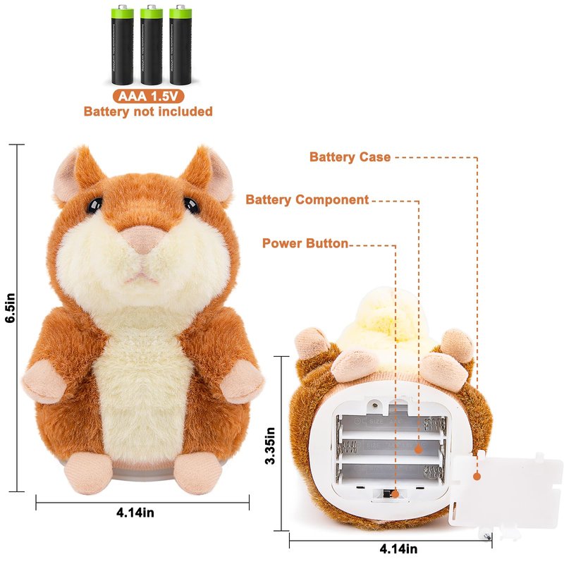The talking hamster is a plush stuffed animals toy, which repeats what you say. It's an ideal gift for Easter, best choice for christmas.