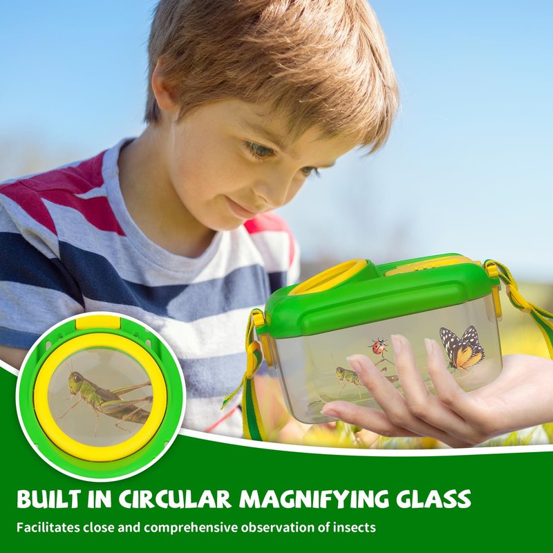 - 🔍【Innovative Design for Safe Observation】Crafted thoughtfully, our Bug Catcher kit features a built-in circular magnifying glass on each insect box, allowing kids to observe their tiny captives closely without harm. Ventilated with ample air holes, these boxes ensure a breathable environment, prioritizing creature comfort and child safety in one smart design.