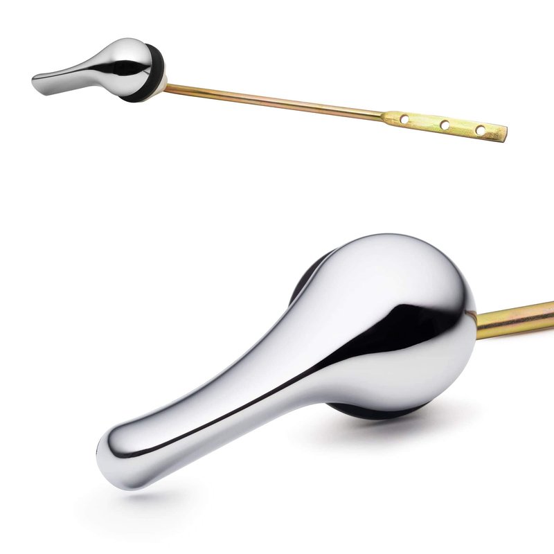 - COMPLETE KIT - Toilet handle set features a chrome finish handle with a reverse thread lock nut, and pre-drilled 8-inch rod. Flusher is available in additional colors and models to match with any type of bathroom décor.