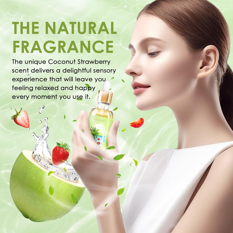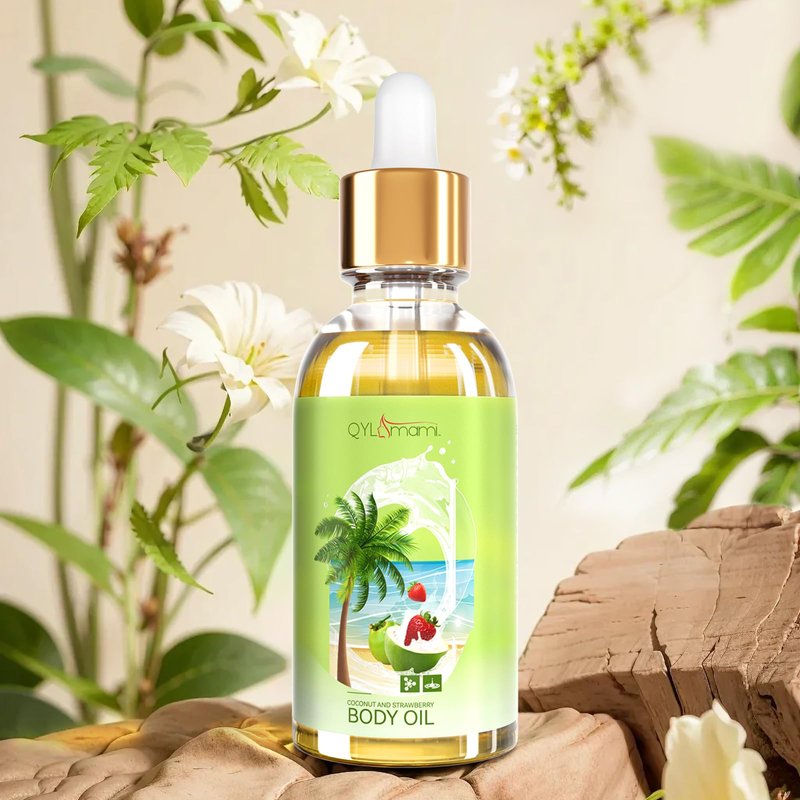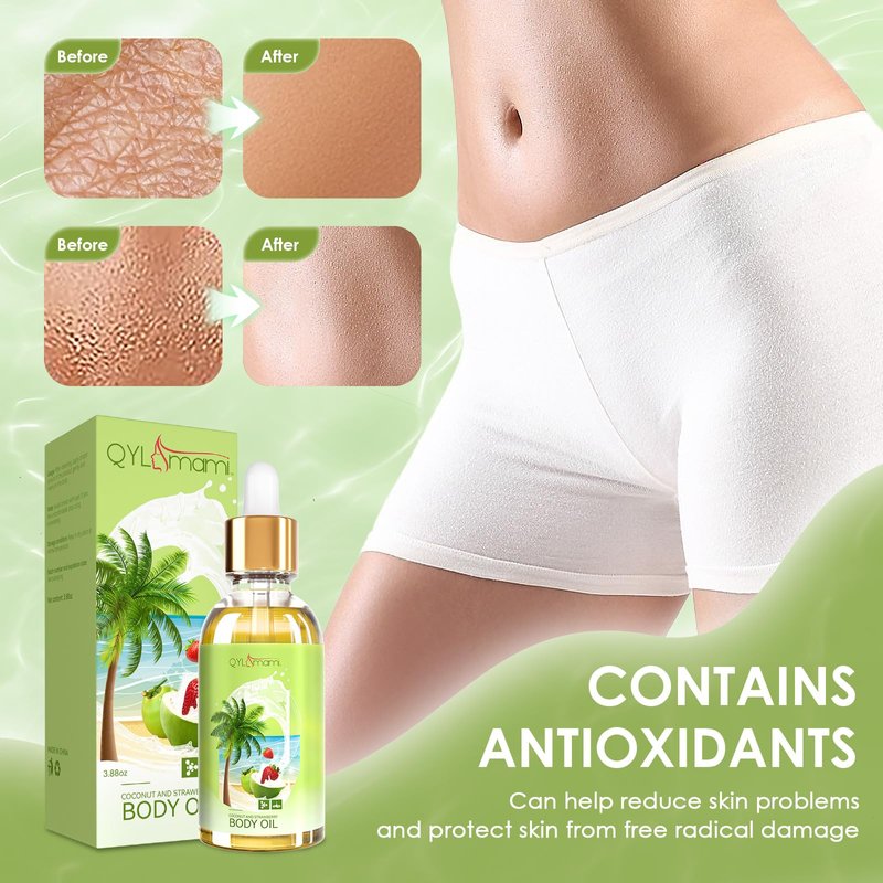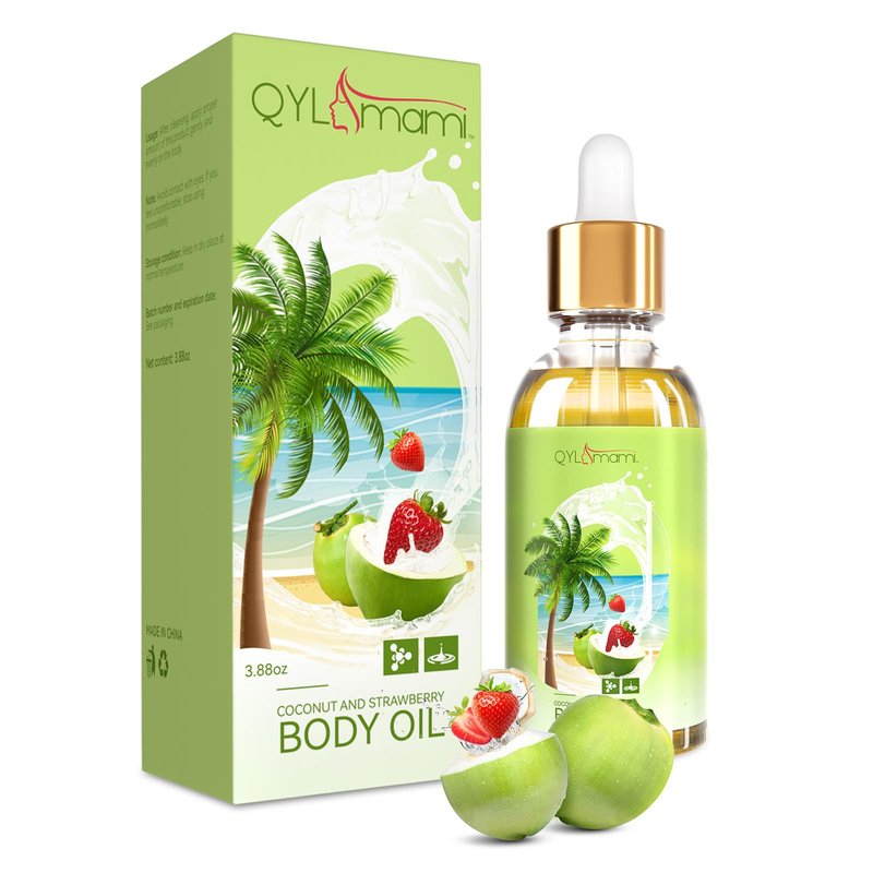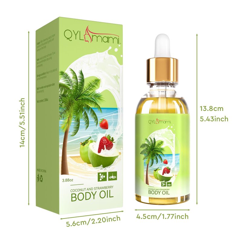 - Moisturize and nourish your skin with our rich body oil scented with a delightful Strawberry Coconut fragrance