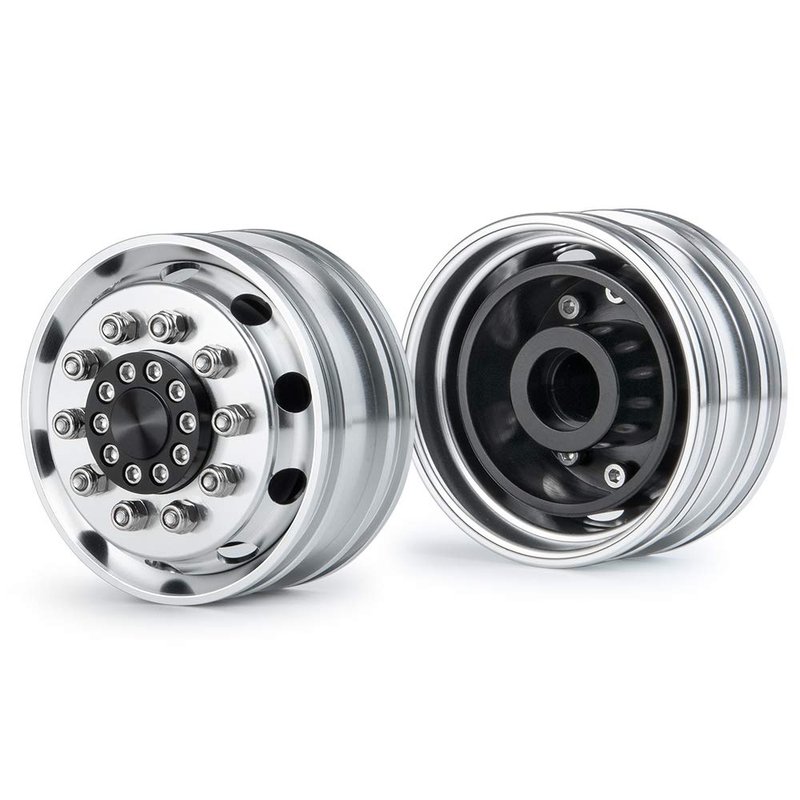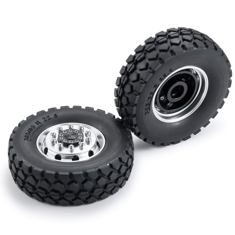 Que-T Metal Front Wheel Rims Hubs & Rubber Tires for 1/14 RC Tamiya Tractor Climbing Trailer Car, Pack of 2