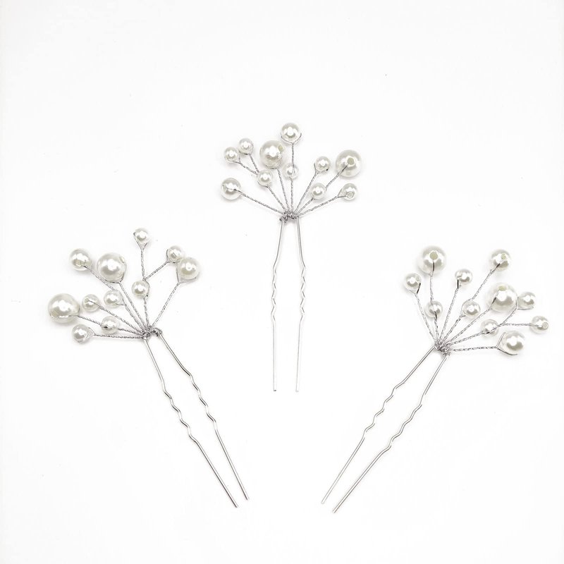 QUEOUNR Pearl Hair Clips, 3PCS Wedding Hair Pins Bridal Decorative Hair Accessories Head-piece for Brides Bridesmaid Prom Women Girls Silver, H27