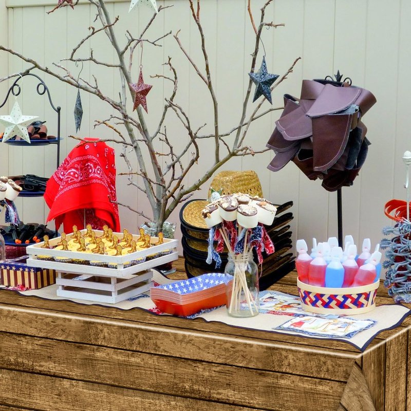 - Western Theme Design: Interesting western birthday party table covers are designed with west wooden house rustic barn door elements, all of these can add a more vintage western themed atmosphere to your party