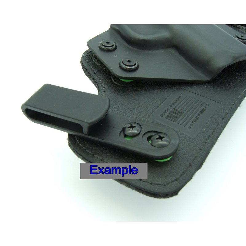 Functionality of handmade Kydex Clips with the strength of a polymer clip with adaptability. Non-Branded Design allows the custom holster maker to let his handcraft standout above everything else. Our extra thick polymer material means more durability and a longer lifespan as well as less time hand making clips!
